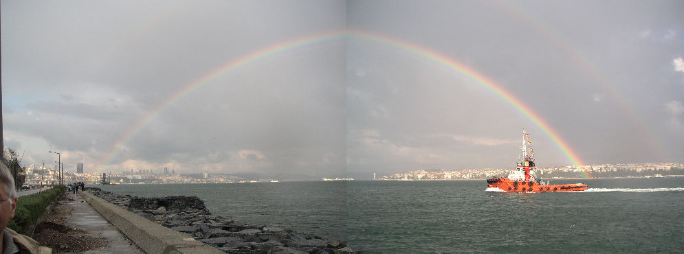 A rainbow spanning the Bosporus, with one foot in Europe,