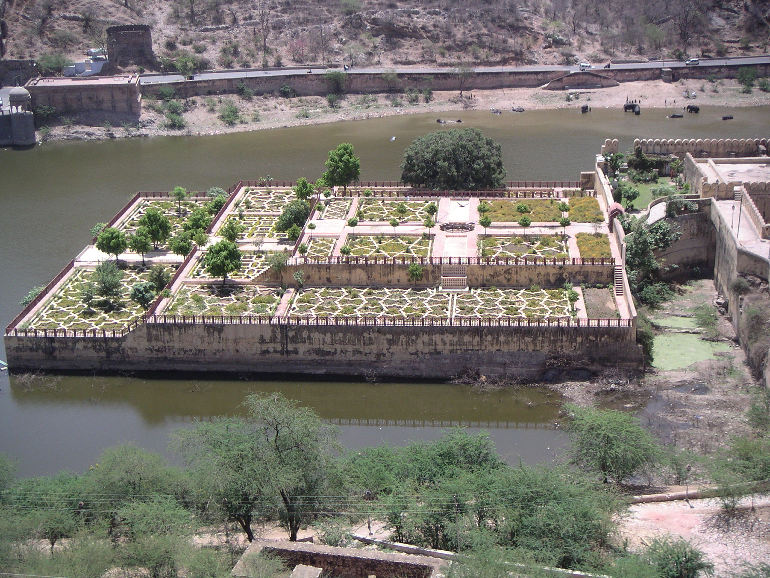 Below, in the middle of Maota Lake, the pleasure garden of the Rajputs.