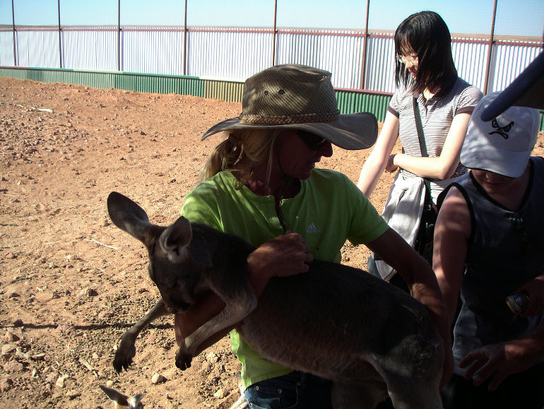 Dawn with one of her kangaroos.
