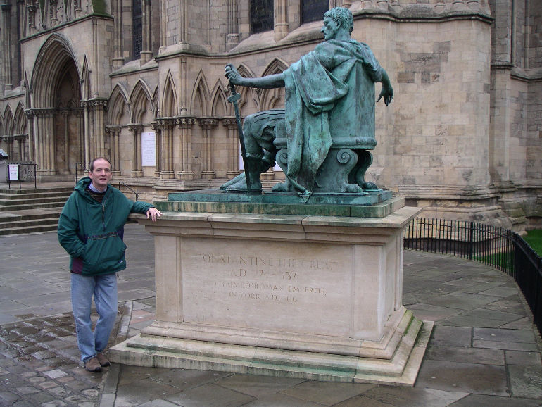 From Constantinople we flew to London, then hired a car and drove north. In the city of York we found this monument, dedicated to Constantine, reminding us that it was in York he was declared emperor. |