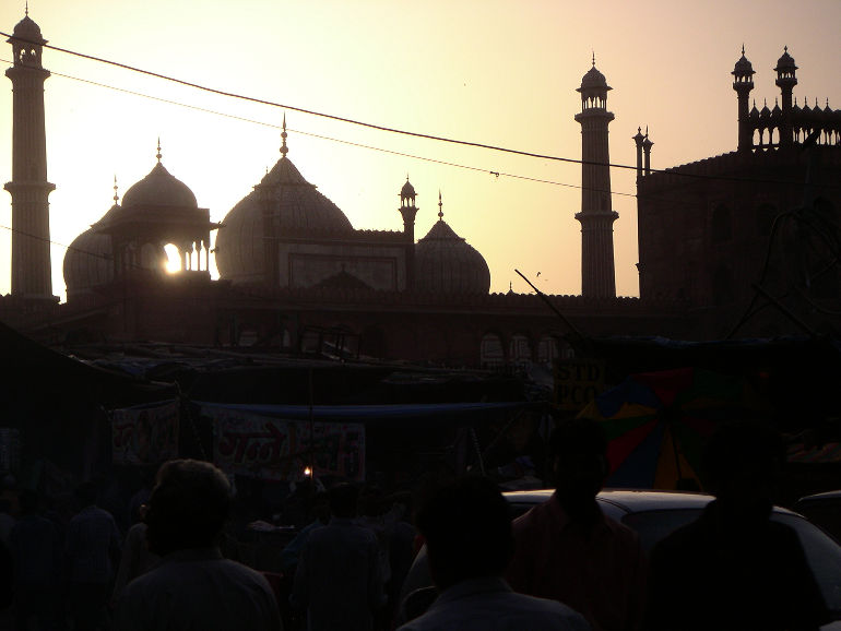Jami Masjid, India's largest mosque, in the heart of Old Delhi.