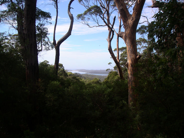 Roadside vista in tall-tree country.